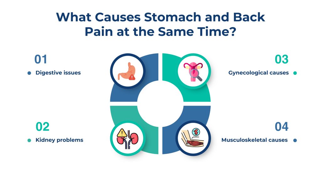 There isn’t a one-size-fits-all answer; stomach and back pain can be the result of many overlapping conditions. Common ones include: